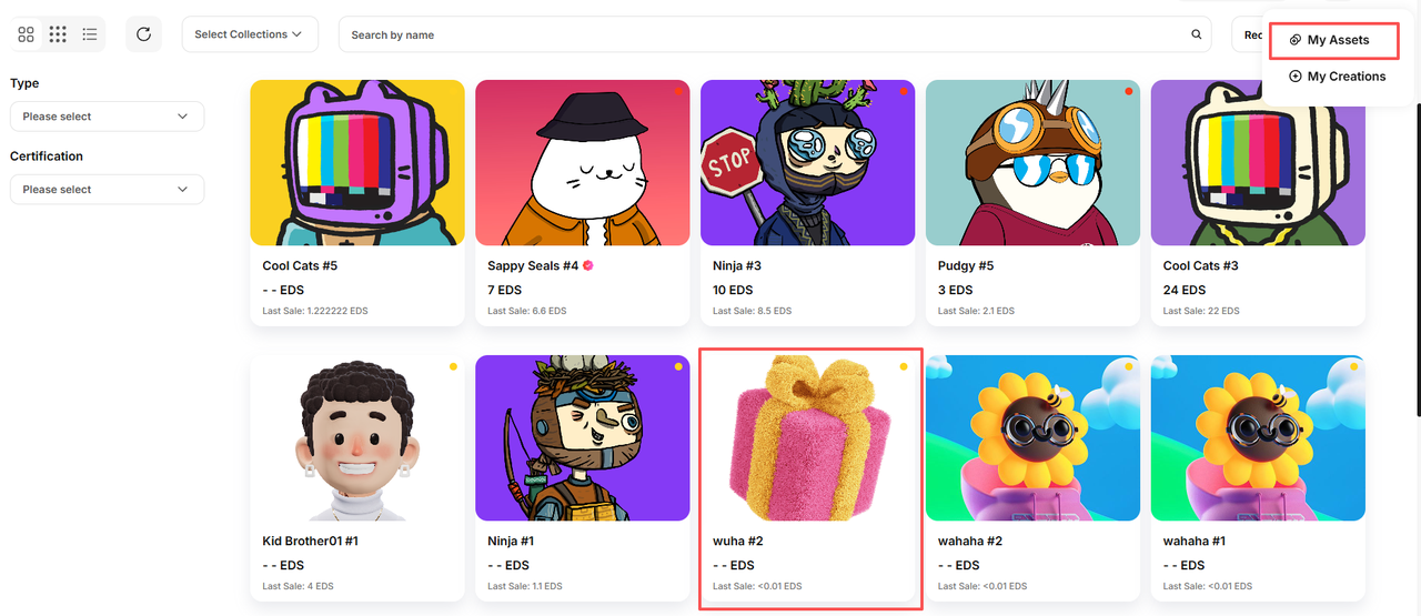 After successful minting, you can go to My Assets to view the NFTs you have successfully minted.