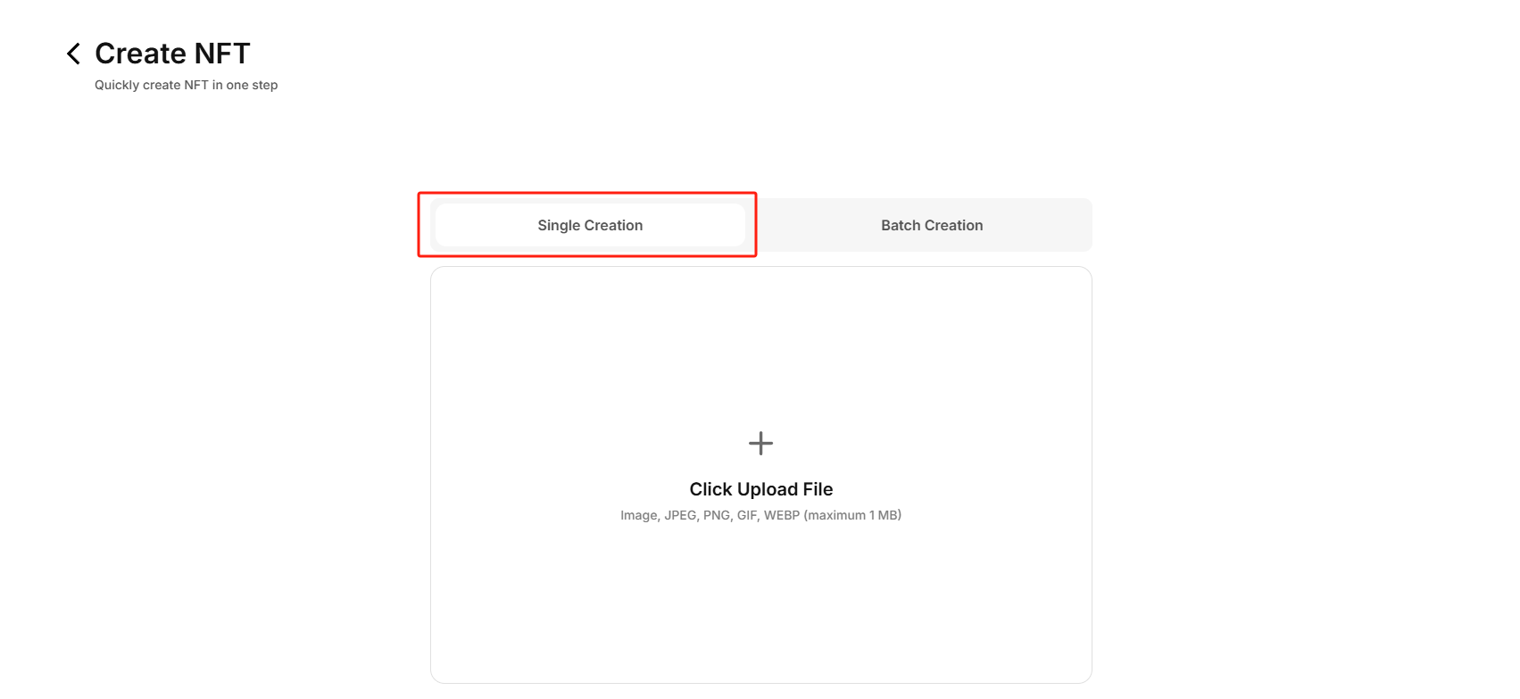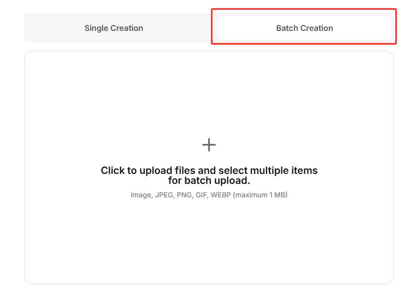 After selecting a collection, choose” Single Creation” or “Batch Creation”.