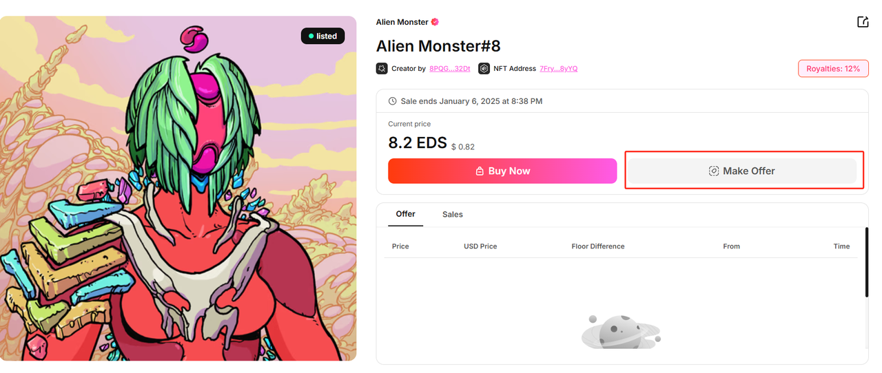 Find the specific NFT you’re interested in, go to the NFT details page, and click “Make Order.”