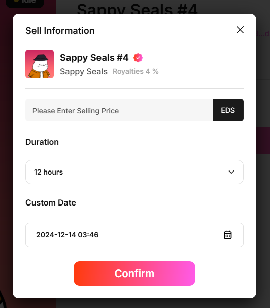 Once the settings are complete, click “Confirm” and your NFT will be successfully listed for sale.